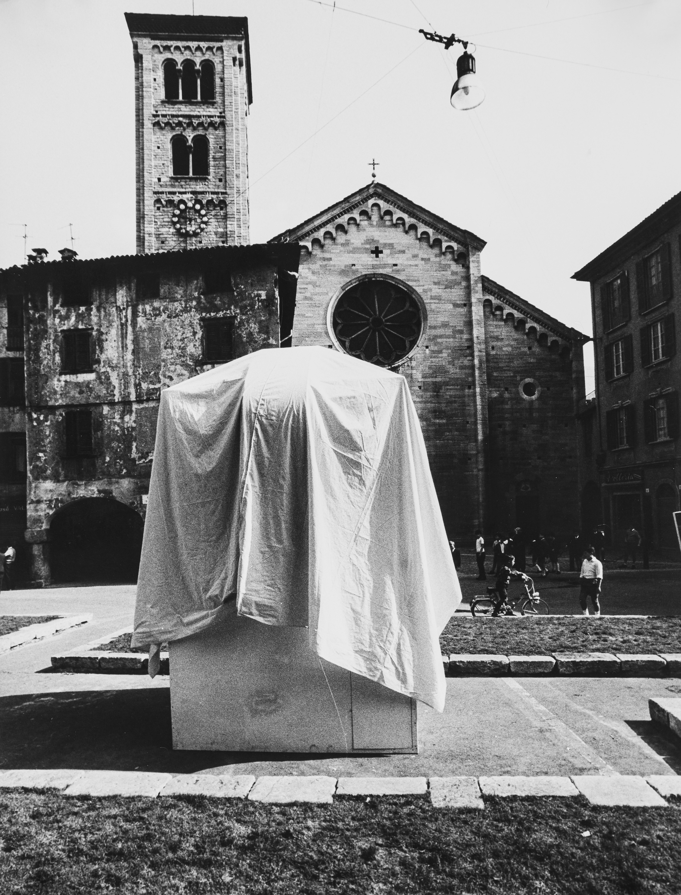 Il 21 settembre 1969 il centro storico di Como fu teatro di una straordinaria manifestazione artistica così radicale nella sua progettualità da non poter essere definita se non come un evento. Curata da Luciano Caramel, Ugo Mulas e Bruno Munari, “Campo Urbano. Interventi Estetici nella dimensione collettiva urbana” coinvolse un gruppo di artisti fra cui Luciano Fabro, Bruno Molli, Franca Sacchi, Bruno Munari, Ugo La Pietra, Enrico Baj, Giuseppe Chiari, Gianni Colombo, Valentina Berardinone, Francesco Somaini, Ico Parisi, Gianni Pettena, Dadamaino e Ugo Mulas intenzionati a portare in mezzo alla gente comune che viene direttamente coinvolta (siamo nella più nobile atmosfera sessantottina e si sente…) una riflessione non teorica ma performativa nei campi dell’arte, dell’architettura, del design, della musica.