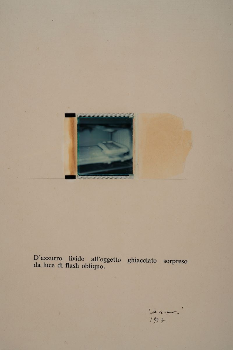 D'azzurro livido all'oggetto ghiacciato sorpreso da luce di flash obliquo, 1977