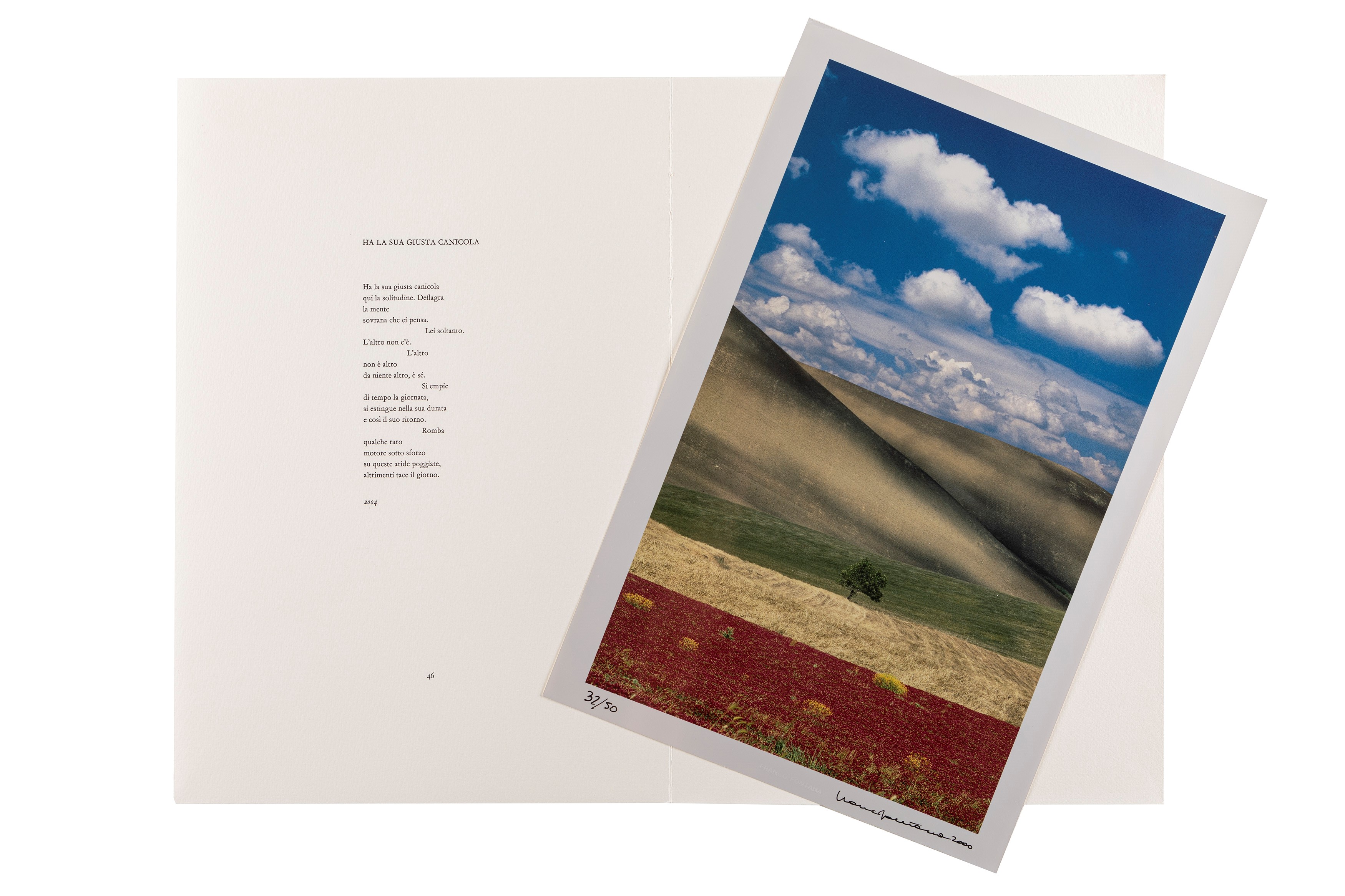 Stampa a getto d'inchiostro in cartelletta oroginale con poesia di Mario Luzzi