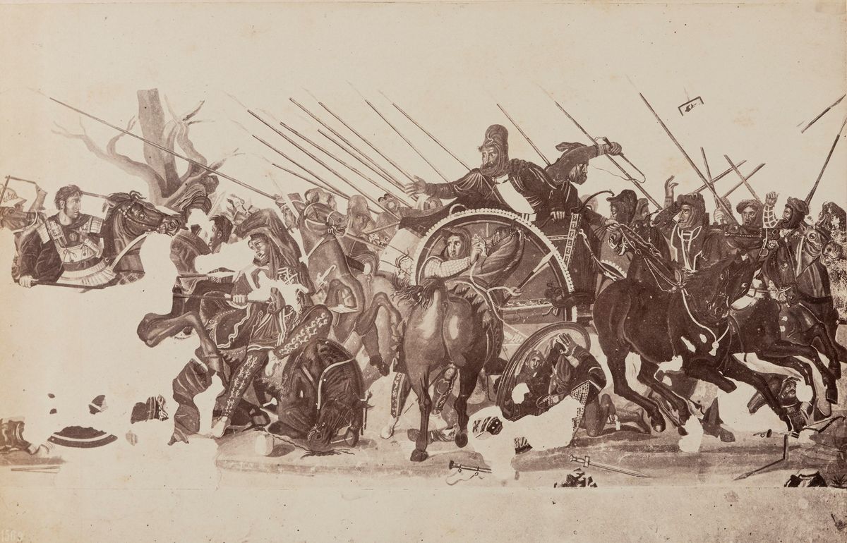 Napoli, statua del fauno ; Mosaico della battaglia di Isso, anni 1870