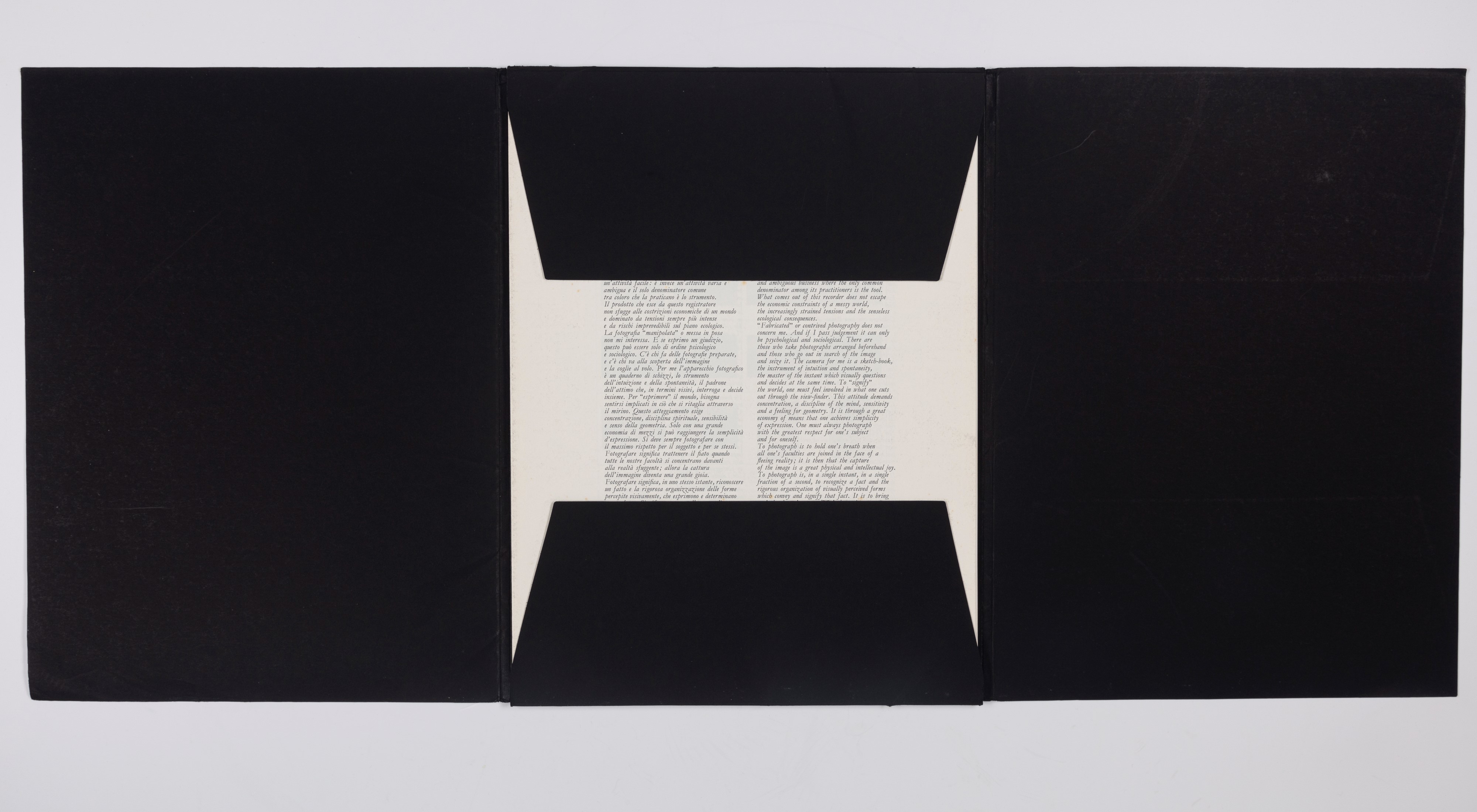 Un quartino con un breve saggio di Henri Cartier-Bresson, nota biografica e didascalie in italiano e in inglese