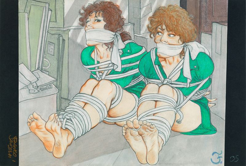 Illustrazione originale realizzata da Saudelli, edita sulla rivista Bondage Photo Treasures n. 29 nel 1990. Firmata.