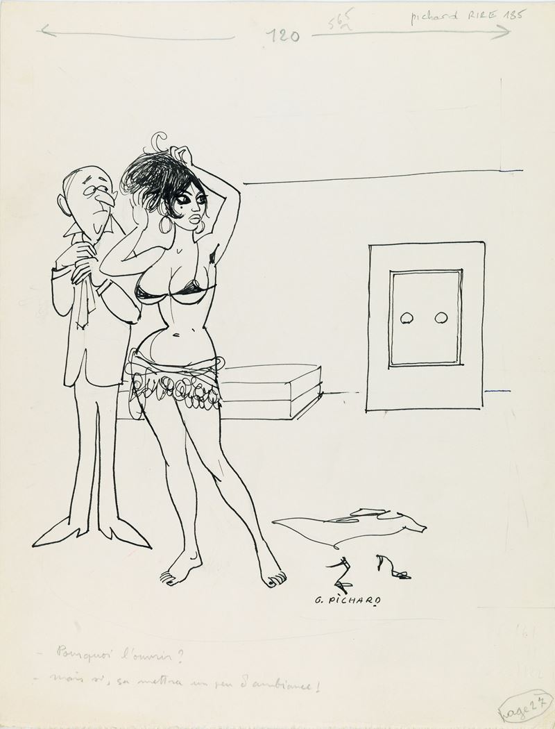 Illustrazione originale realizzata da Pichard alla fine degli anni ‘50 per il giornale satirico francese Le Rire. Firmata.