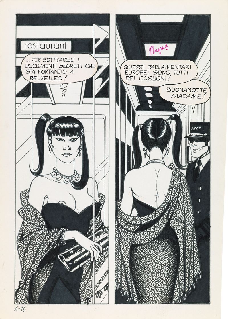 Tavola originale realizzata da Magnus per "Strage in vagone letto", edita su Necron n. 6 a pag. 16 dalla Edifumetto nel 1981. Firmata.