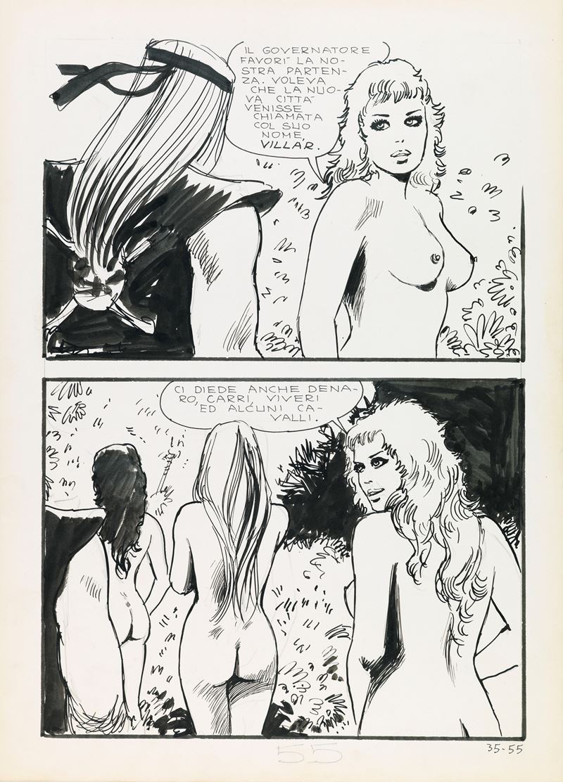 Tavola originale realizzata da Manara per "La piacevole spia", edita su Jolanda de Almaviva n. 35 a pag. 55 dalla Ediperiodici nel 1972.