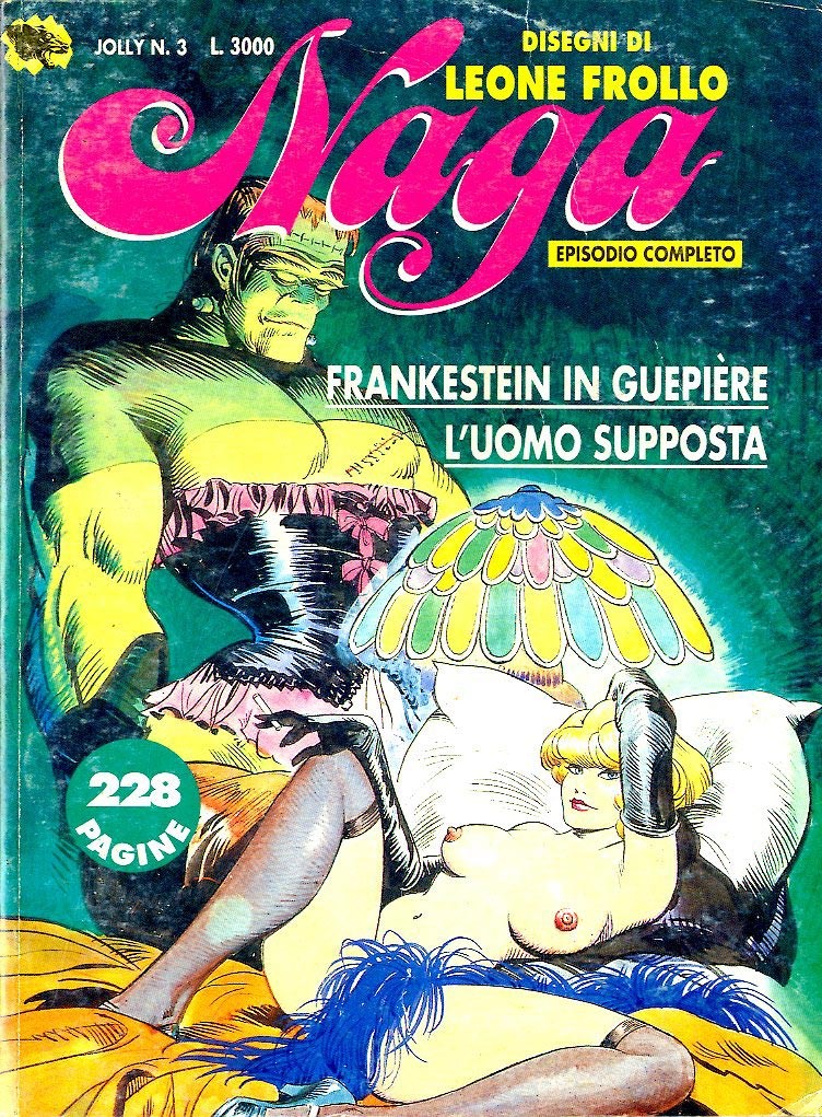 Originale di copertina per "Frankenstein in guepière" edita su Naga n. 3 dalle Edizioni Del Vascello nel 1975. Rara e superba copertina di Frollo che in questa storica serie si alternò con Biffignandi nella realizzazione delle cover.