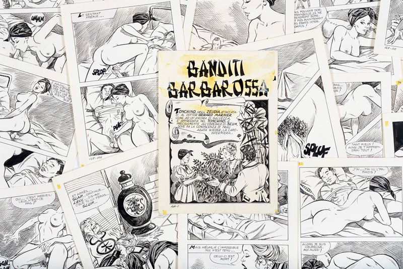 Storia completa composta da 186 tavole originali realizzate da Del Mestre per "Banditi Barbarossa", edita su La Schiava n. 26 dalla Ediperiodici nel 1985. Ripubblicata in Francia con il titolo di "Le sanguinaire". Si allega la pubblicazione.