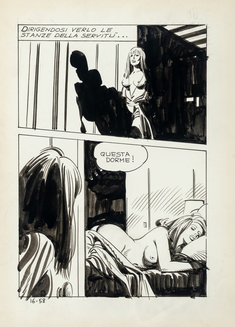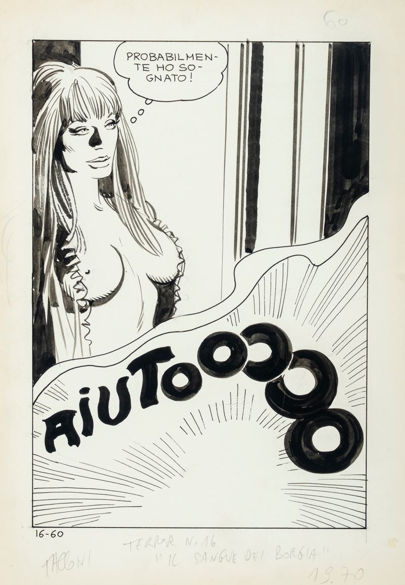 Lotto composto da 3 tavole originali realizzate da Tacconi per "Il sangue dei Borgia", edite alle pagg. 58, 59, 60 su Terror n. 16 dalle Edizioni Erregi nel 1971.