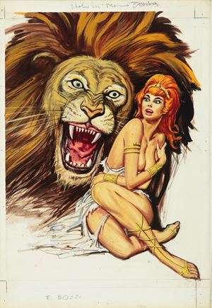 Originale di copertina realizzato da Bozzi per "Una Venere tra le belve", edito su Teodora n. 1 dalla S.I.E. nel 1970.