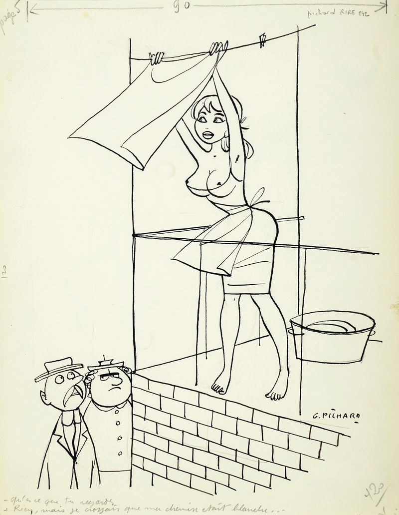 Illustrazione originale realizzata da Pichard alla fine degli anni ‘50 per il giornale satirico francese Le Rire. Firmata.
