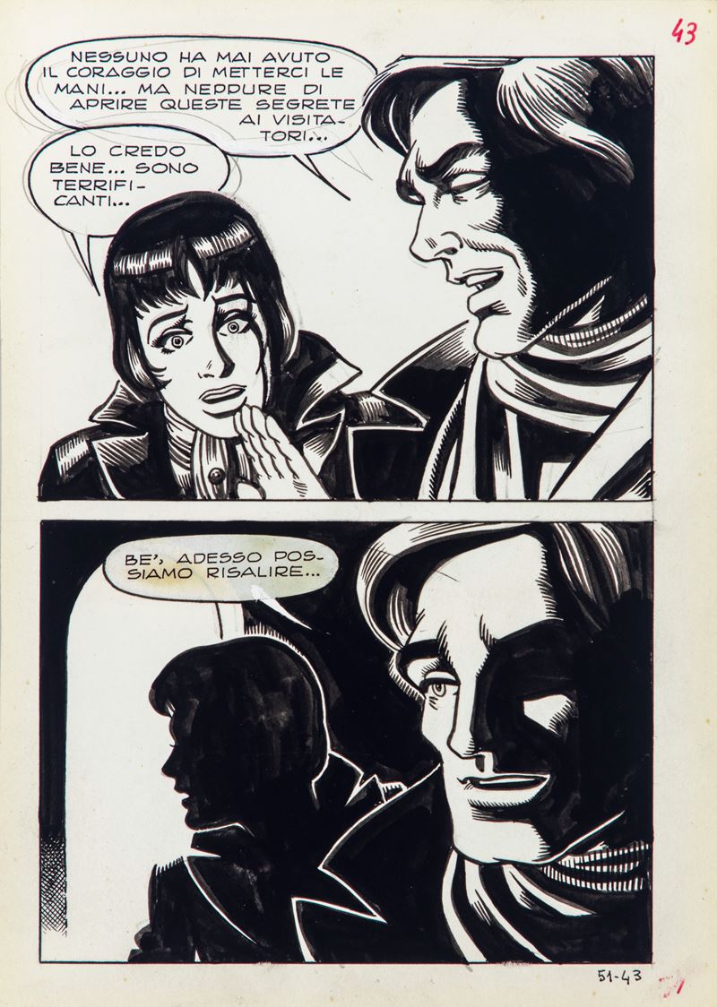 Tavola originale realizzata da Magnus per "Mezzanotte di morte", edita su Il Vampiro Presenta n. 14 a pag. 43 dalla Edifumetto nel 1974. Appartenente al ciclo delle cosiddette "novelle erotiche" questa storia, sceneggiata dallo stesso Magnus, segna il primo passo dal maestro bolognese nel mondo del fumetto erotico. Di grande rarità.