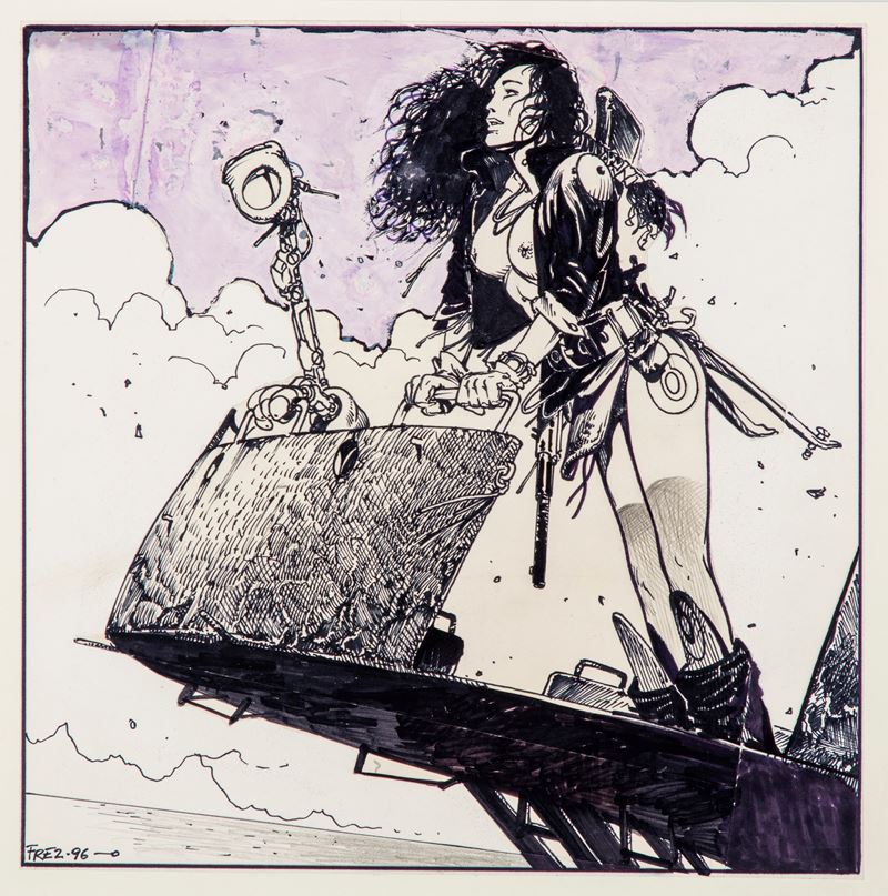 Illustrazione originale realizzata da Frezzato come studio per il suo celebre dipinto pubblicato negli U.S.A. nel calendario Heavy Metal Calendar 1998. Firmata e datata.