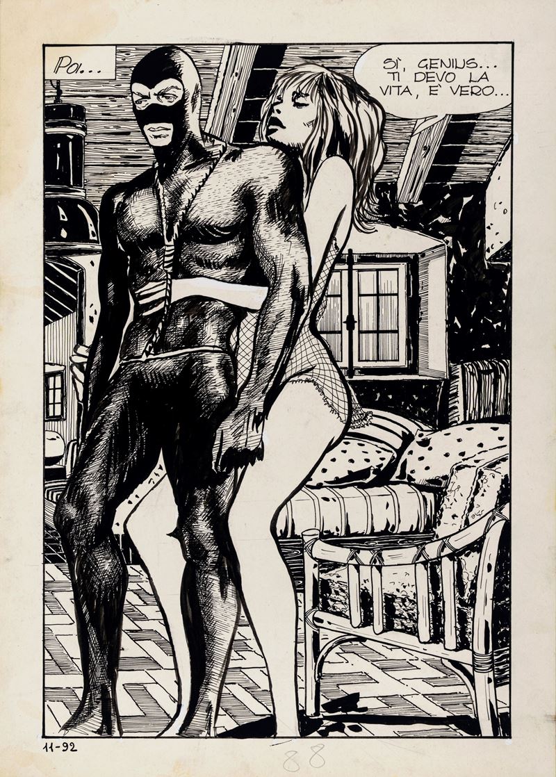 Splash page originale realizzata da Manara per "Gli artigli del gatto verde", edita su Genius n. 11 a pag. 92 da Furio Viano Editore nel 1970.