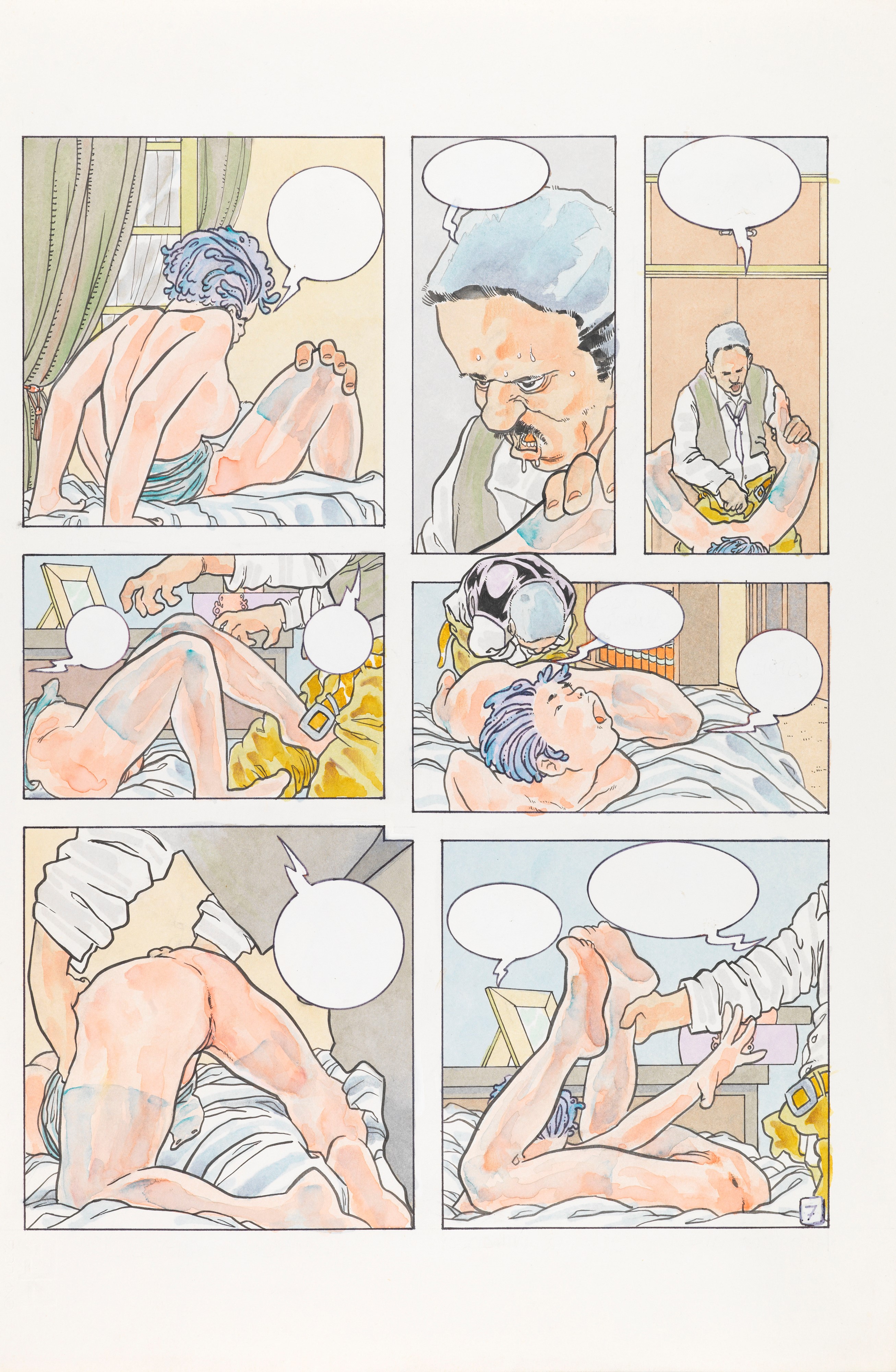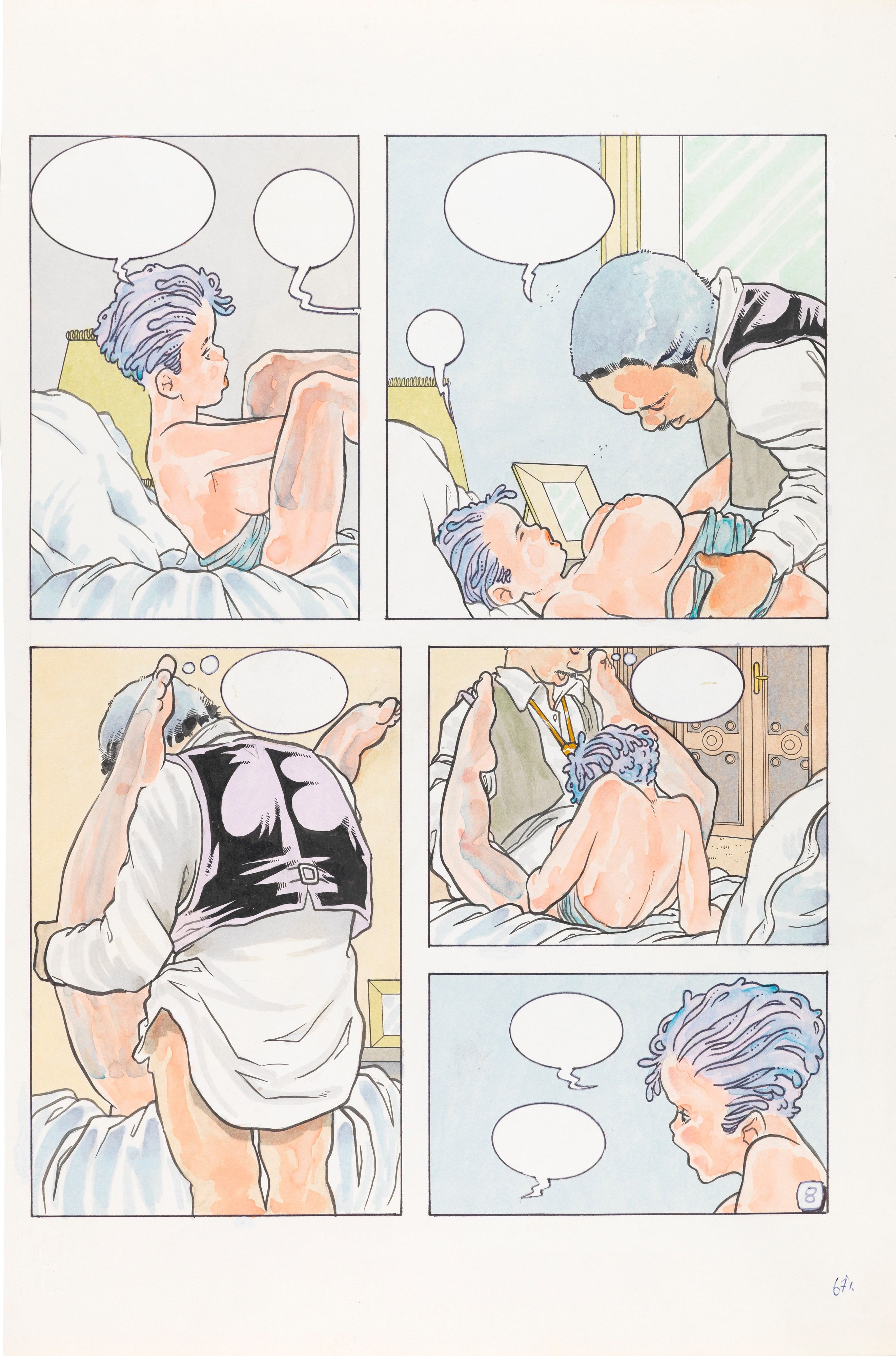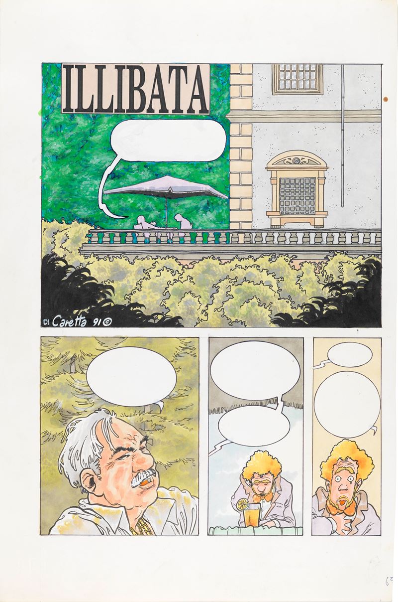 Storia completa composta da 10 tavole originali realizzate da Caretta per "Illibata", edita sul mensile di fumetti d'autore per adulti Paprica n. 1 nel 1991. Firmata e datata.