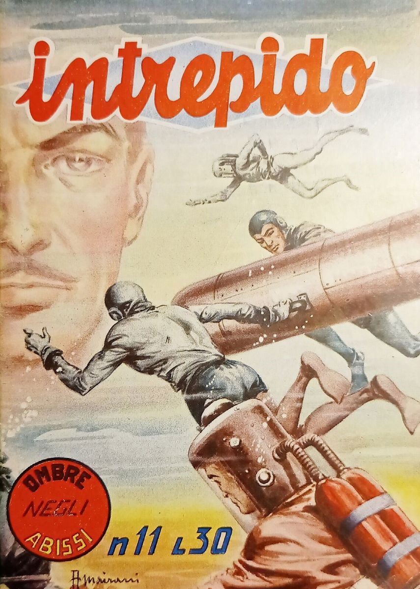 Originale di copertina realizzato da Mairani per "Ombre negli Abissi", edito sull´Intrepido n. 11 dall´editrice Universo nel 1955. Firmato.