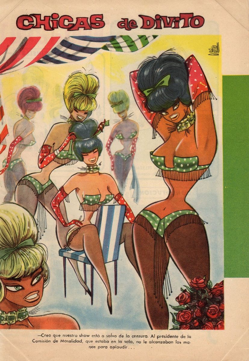 Illustrazione originale realizzata da Divito per le sue celebri "Chicas de Divito", pubblicata nella rivista argentina Rico Tipo, da lui fondata e diretta, durante gli anni '50. Divito fu un vero e proprio precursore dei tempi, creando senza volere uno stereotipo femminile avanguardia di quella rivoluzione sessuale che scoppierà molti anni più tardi. Lieve piega orizzontale al centro. Firmata.