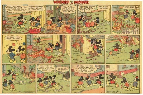 Frammento di tavola domenicale del 08/01/1939 per "Mickey Mouse". Floyd Gottfredson realizzò la sua ultima tavola domenicale per Topolino il 25/12/1938 passando ufficialmente il testimone al suo miglior allievo Gonzales l'01/01/1939, quella da noi presentata è quindi una vignetta della seconda tavola domenicale in assoluto per "Mickey Mouse" di Gonzales. Ristampata per la prima volta in Italia nel 1939 su Topolino giornale n. 321 con il titolo "La vita privata di Topolino". Un pezzo da museo.