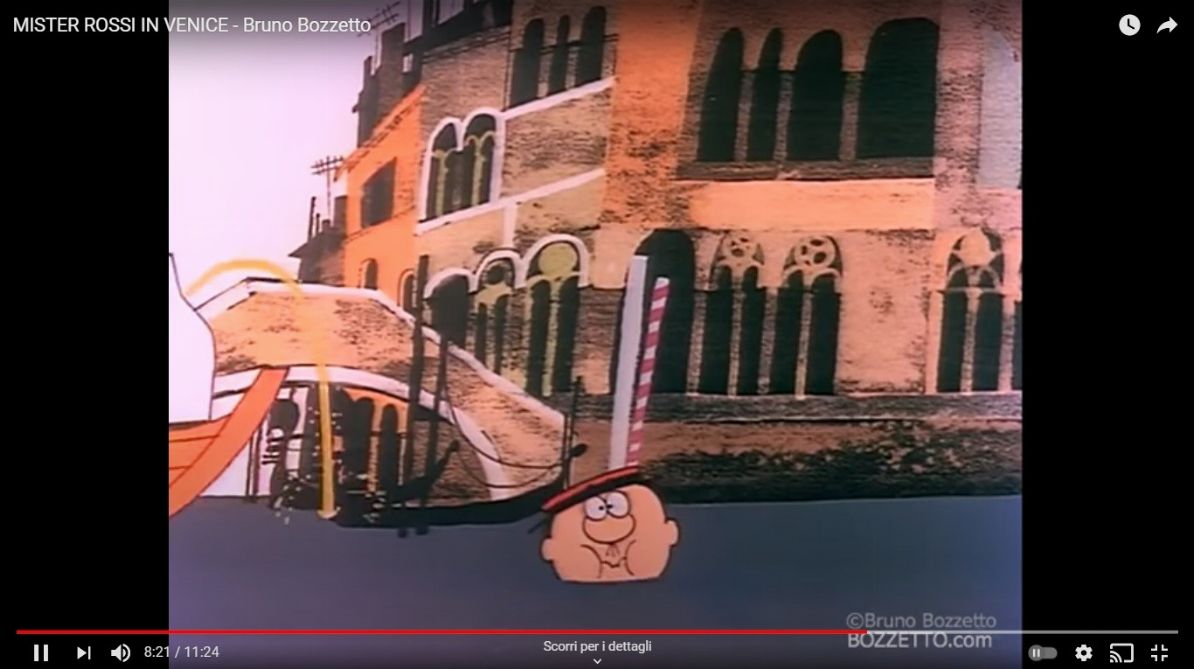 Cel originale su fondale dipinto realizzato dallo Studio Bozzetto in due occasioni distinte: il fondale fu utilizzato nel cortometraggio "Il signor Rossi a Venezia" del 1974, la cel con Pinocchio invece appare nel lungometraggio "I sogni del signor Rossi" del 1977. Bozzetto decise di unire queste due opere per omaggiare il Pinocchio di Collodi in occasione della mostra "Pinocchio graphis: un naso lungo duecento disegni inediti" tenutasi a Venezia nel 1986, l'opera è pubblicata sull´omonimo catalogo edito dall´Editrice Montagna nel 1987.