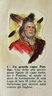 Illustrazione originale realizzata a quattro mani da De Gaspari e Tempesti per la figurina n. 1 raffigurante il capo indiano Pontiac edita sull'album "West" dalla Panini nel 1976.