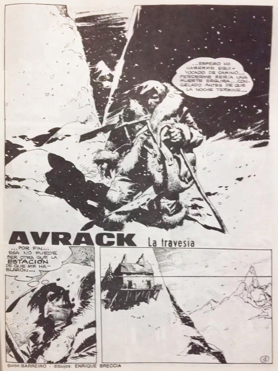 Title page originale realizzata da Breccia per "La travesìa", episodio del celebre Avrack edito per la prima volta in Argentina sulle pagine di Super Skorpio n. 146 nel 1988.