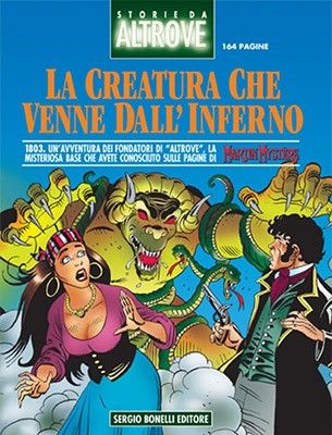 Originale di copertina realizzato da Alessandrini per "La creatura che venne dall'inferno", edito su Storie da Altrove n. 7 dalla Bonelli nel 2004. Si allega la prova colore ad acquerello. Firmato e datato.