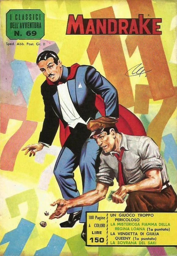 Originale di copertina realizzato da Caria per "Un giuoco troppo pericoloso", avventura di Mandrake edita nella collana I Classici dell'avventura n. 69 dalle Edizioni Fratelli Spada nel 1964. Piccola piega all'angolo inferiore sinistro.
