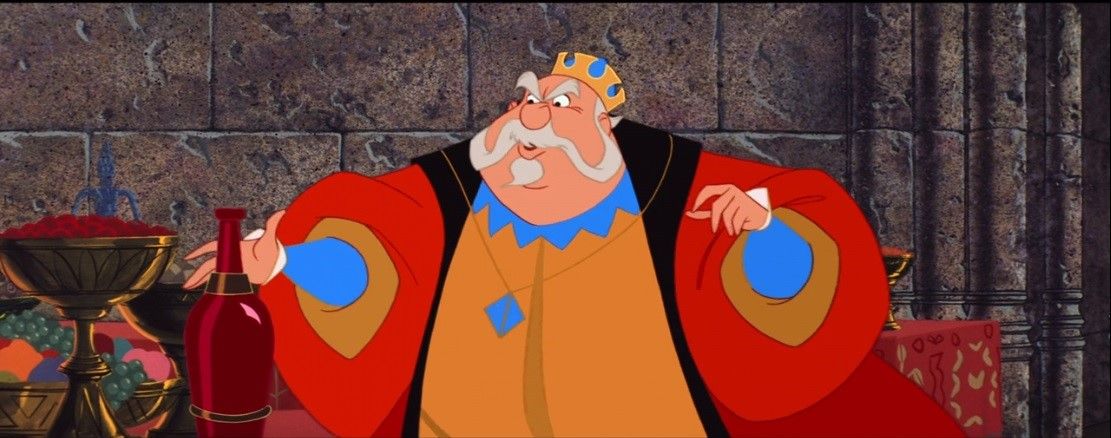 Disegno di produzione per il personaggio di Re Uberto de "La bella addormentata nel bosco", 16° Classico Disney diretto tra gli altri da Wolfgang Reitherman nel 1959. Lievi pieghe.
