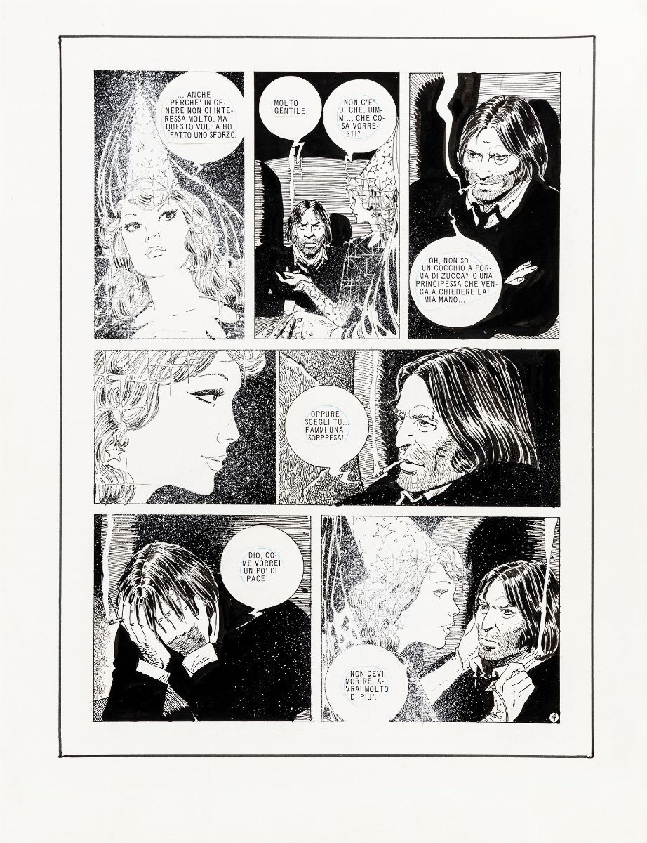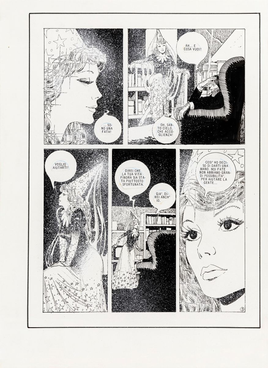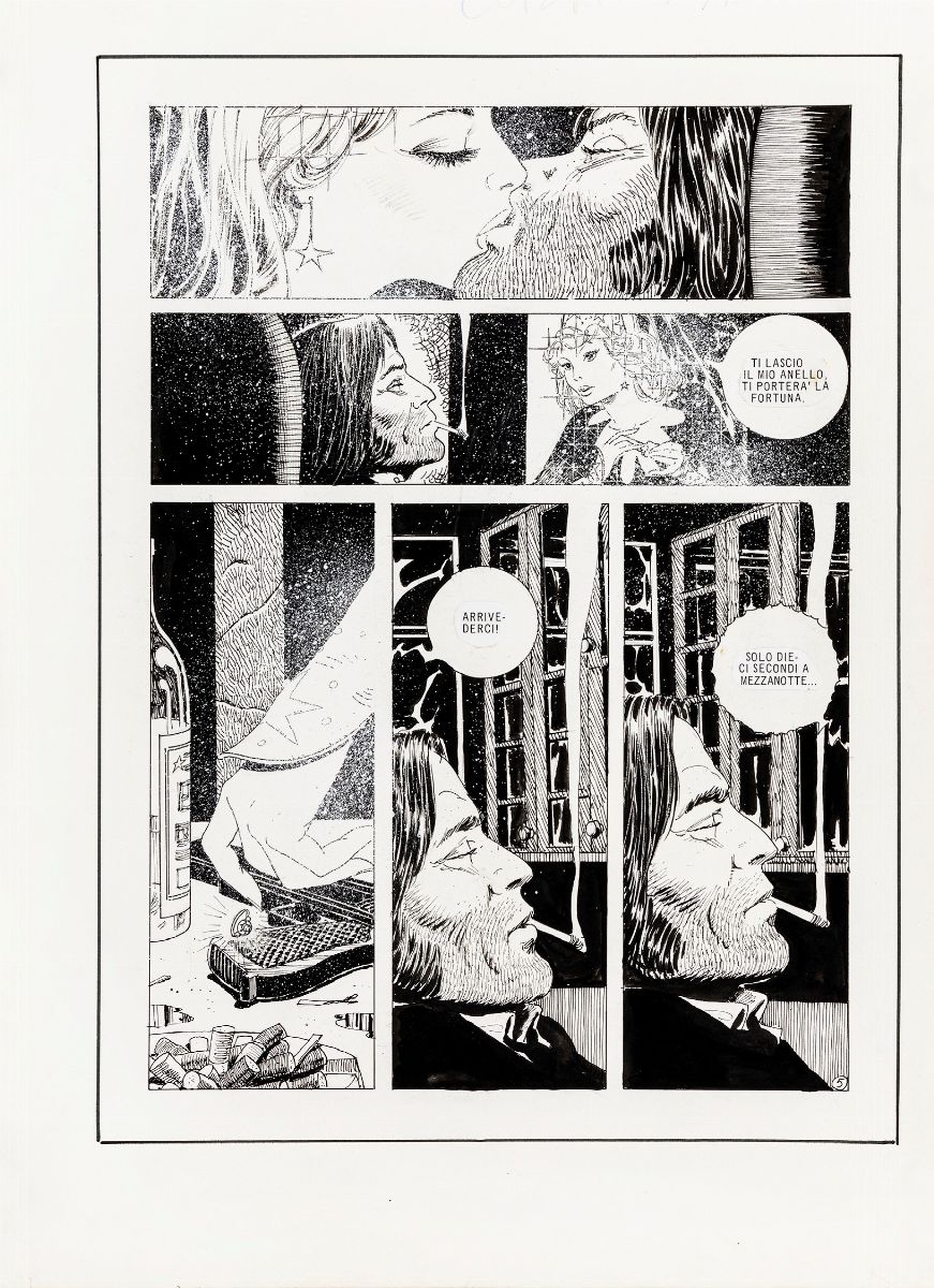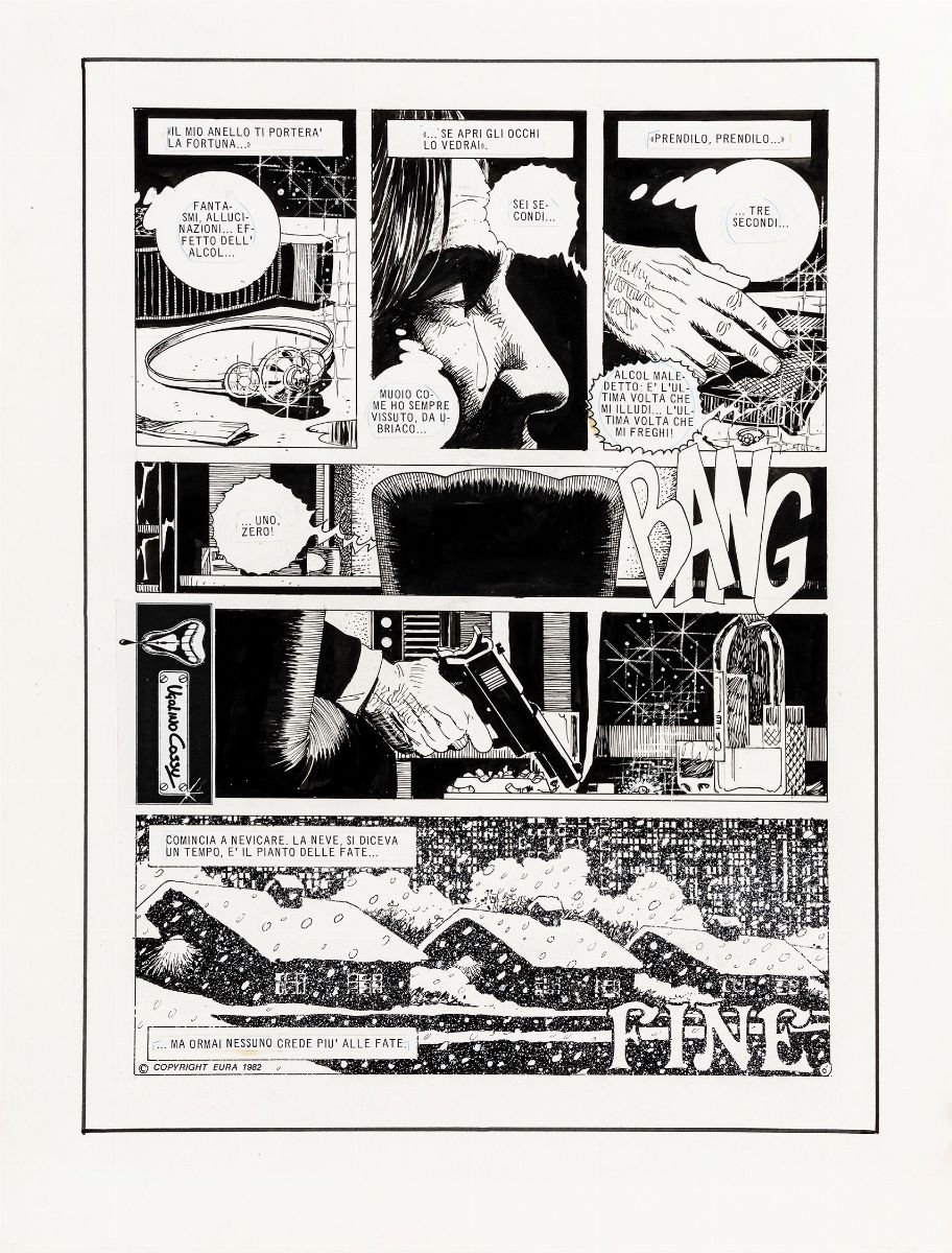 Storia completa composta da 6 tavole originali realizzate da Cossu per "Tre minuti a mezzanotte", edita per la prima volta sulle pagine di Lanciostory n. 39 anno VIII nel 1982. Una porzione della quinta pagina fu usata come copertina.
