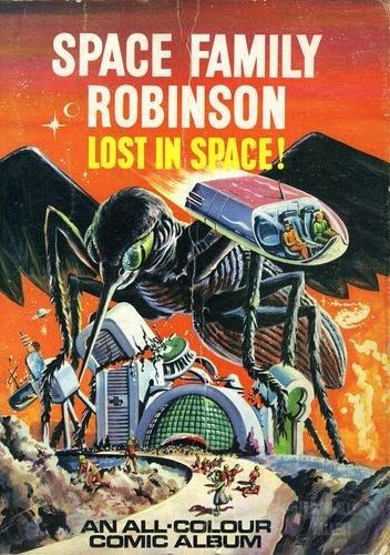 Originale di copertina per il comic book britannico "Space Family Robinson: Lost in Space", edito dalla World Distributors nel 1965. Howarth è considerato tra i più importanti copertinisti britannici dei comic book dell'epoca, gli furono affidati titoli quali: Doctor Who, The Avengers, Tarzan, Bewitched, Danger Man, James Bond e molti altri. Pieghe agli angoli.