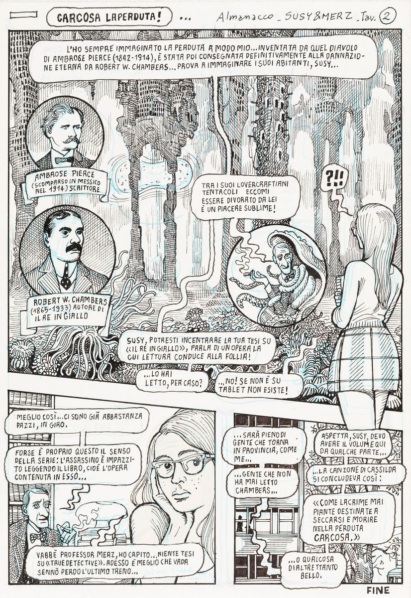 Coppia di tavole originali realizzate da Bacilieri per l'avventura di Susy & Merz intitolata "Una gita a Carcosa" edita nel 2015.