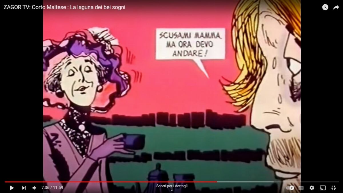 Cel originale (tre fogli) realizzata dallo Studio Bignardi per la sequenza n. 25 de "Corto Maltese e la laguna dei bei sogni", episodio della serie su Corto Maltese che rinnova la collaborazione di Pratt con lo studio di animazione modenese, episodio trasmesso per la prima volta nella trasmissione SuperGulp! nel 1977.