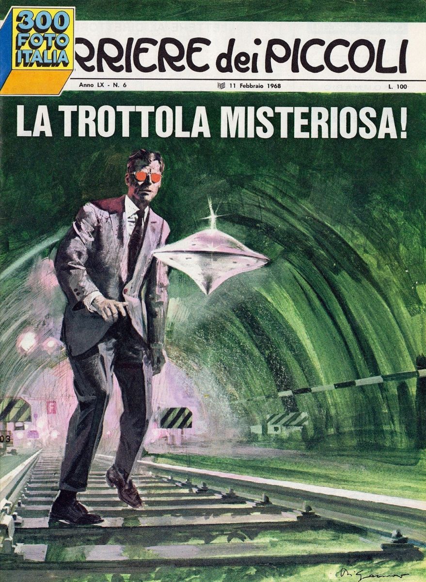 Originale di copertina realizzato da Di Gennaro per il racconto fantascientifico "La trottola misteriosa" di Mino Milani (della serie di Martin Cooper) edito sul C.d.P. n. 6 nel 1968.