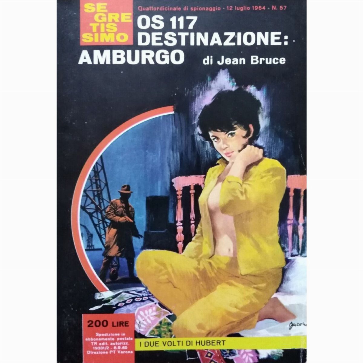 Originale di copertina realizzato da Jacono per "OS 117 destinazione Amburgo" di Jean Bruce, edito nella celebre collana Segretissimo n. 57 dalla Mondadori nel 1964. Firmato.