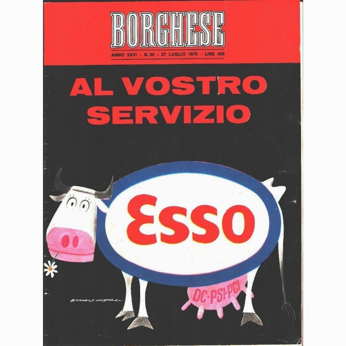 Originale di copertina realizzato da Nistri per il periodico politico e culturale Il Borghese n. 30 del 1975. Firmato.