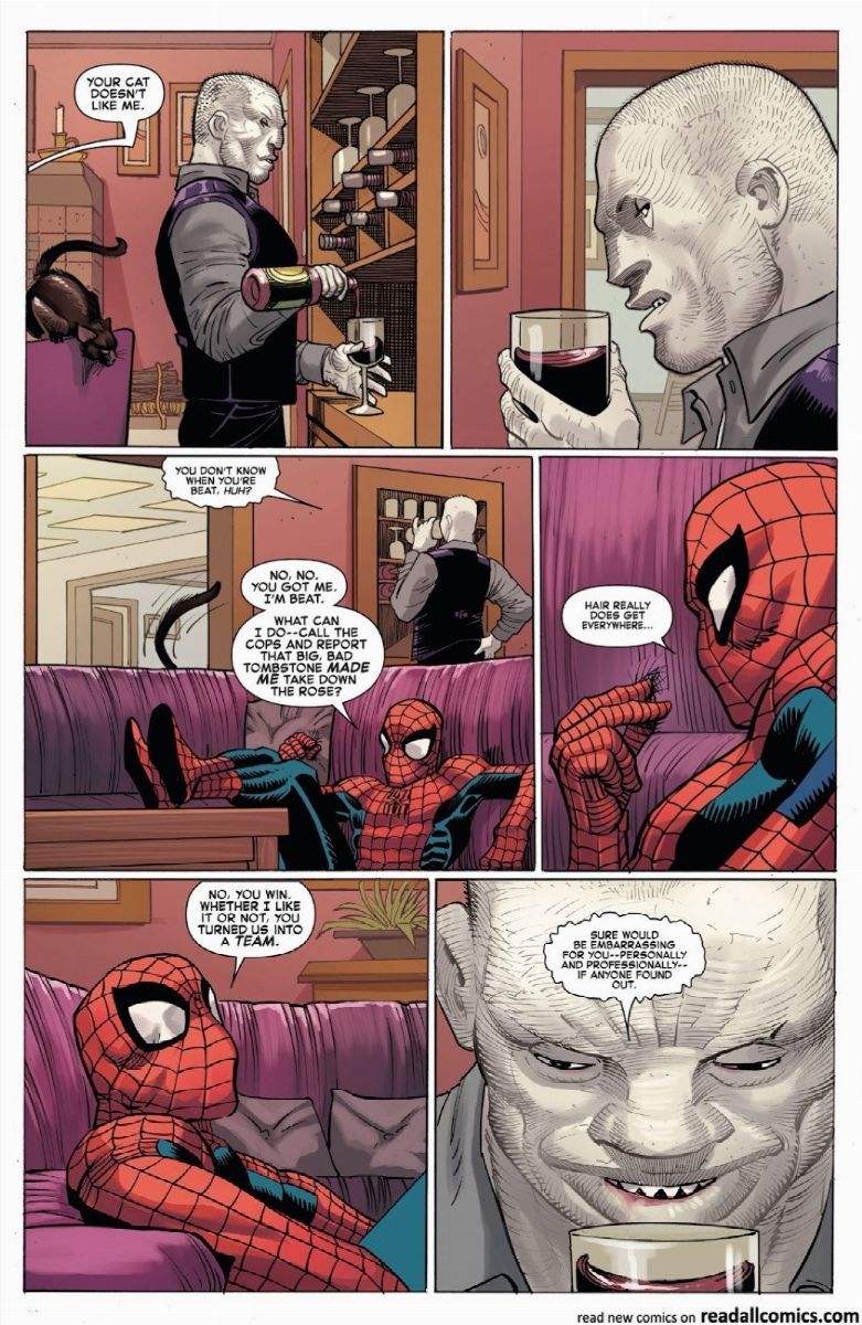 Tavola originale realizzata da Romita Jr. per "Amazing Spider-Man" n. 5, edita a pag. 15 dalla Marvel nel 2022. Chine di Scott Hanna. Firmata da entrambi gli autori.