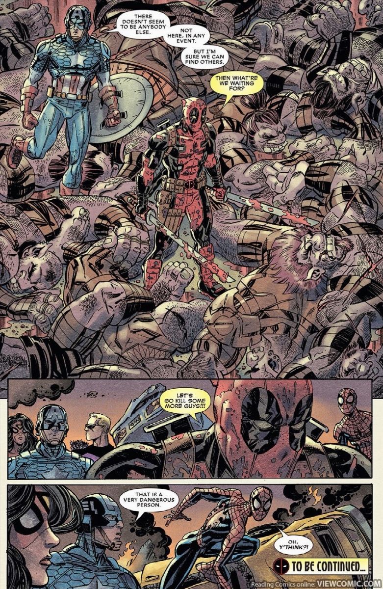 Tavola conclusiva realizzata da Koblish per la miniserie Deadpool's Art of War n. 3, edita a pag. 20 dalla Marvel nel 2014.