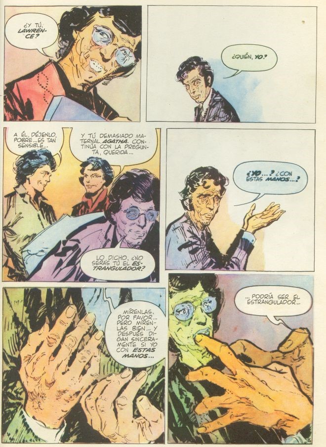 Tavola originale realizzata da Breccia per la pag. 6 di "Estas bellas manos velludas", storia pubblicata per la prima volta in Argentina su Skorpio Plus n. 1 dalle Ediciones Record nel 1984. Lievi pieghe agli angoli.