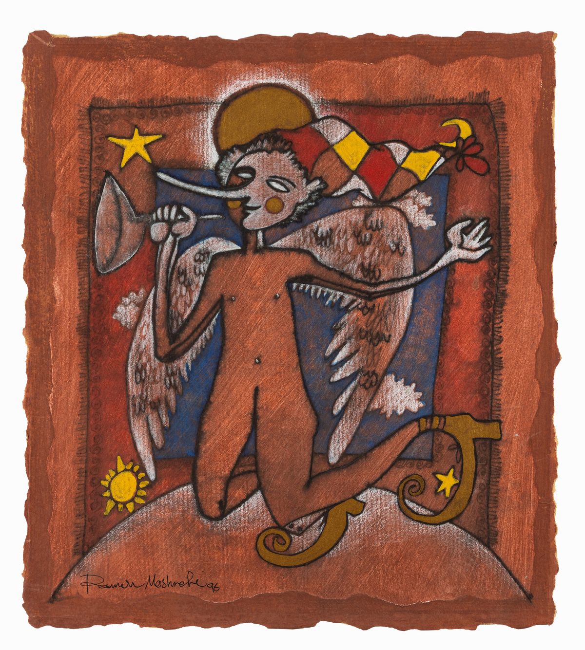 Coppia di 2 illustrazioni originali realizzate dall'iraniano Moshrefi nel 1996. Firmate e datate.
