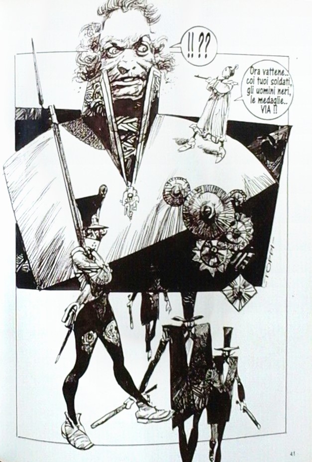 Tavola originale realizzata da Toppi per la pag. 9 di "Porta Tosa 1848", storia che narra le vicende delle Cinque Giornate di Milano edita nel volume "La Donna del Risorgimento" dal Museo del Fumetto di Lucca nel 2011. Firmata.