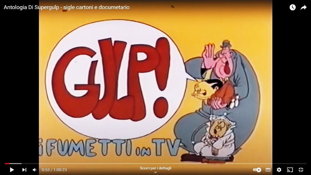 Cel originale realizzata dallo Studio Bignardi per la mitica sigla di apertura della serie televisiva "SuperGulp!". A dare il benvenuto ai piccoli telespettatori erano i presentatori della serie stessa, cioè i protagonisti di Nick Carter di Bonvi. Lievi ondulature.
