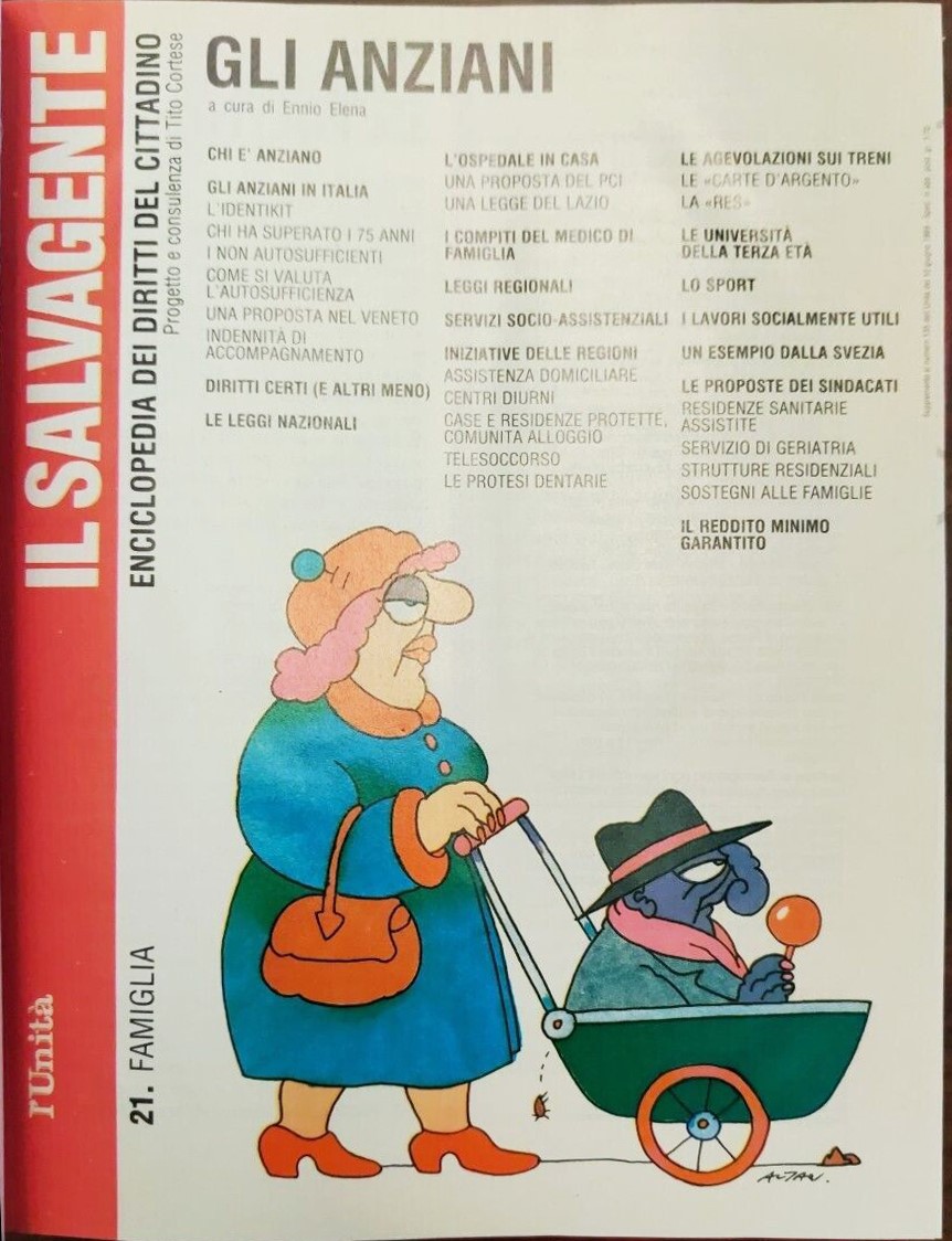 Originale di copertina realizzato da Altan per Il salvagente: enciclopedia dei diritti del cittadino n. 21, fascicolo allegato a L'Unità nel 1989. Firmato.