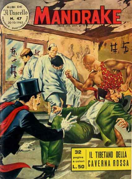 Originale di copertina realizzato da Caria per "Il tibetano della caverna rossa", avventura di Mandrake edita nella collana Albi de Il Vascello n. 47 dalle Edizioni Fratelli Spada nel 1963. Firmato.