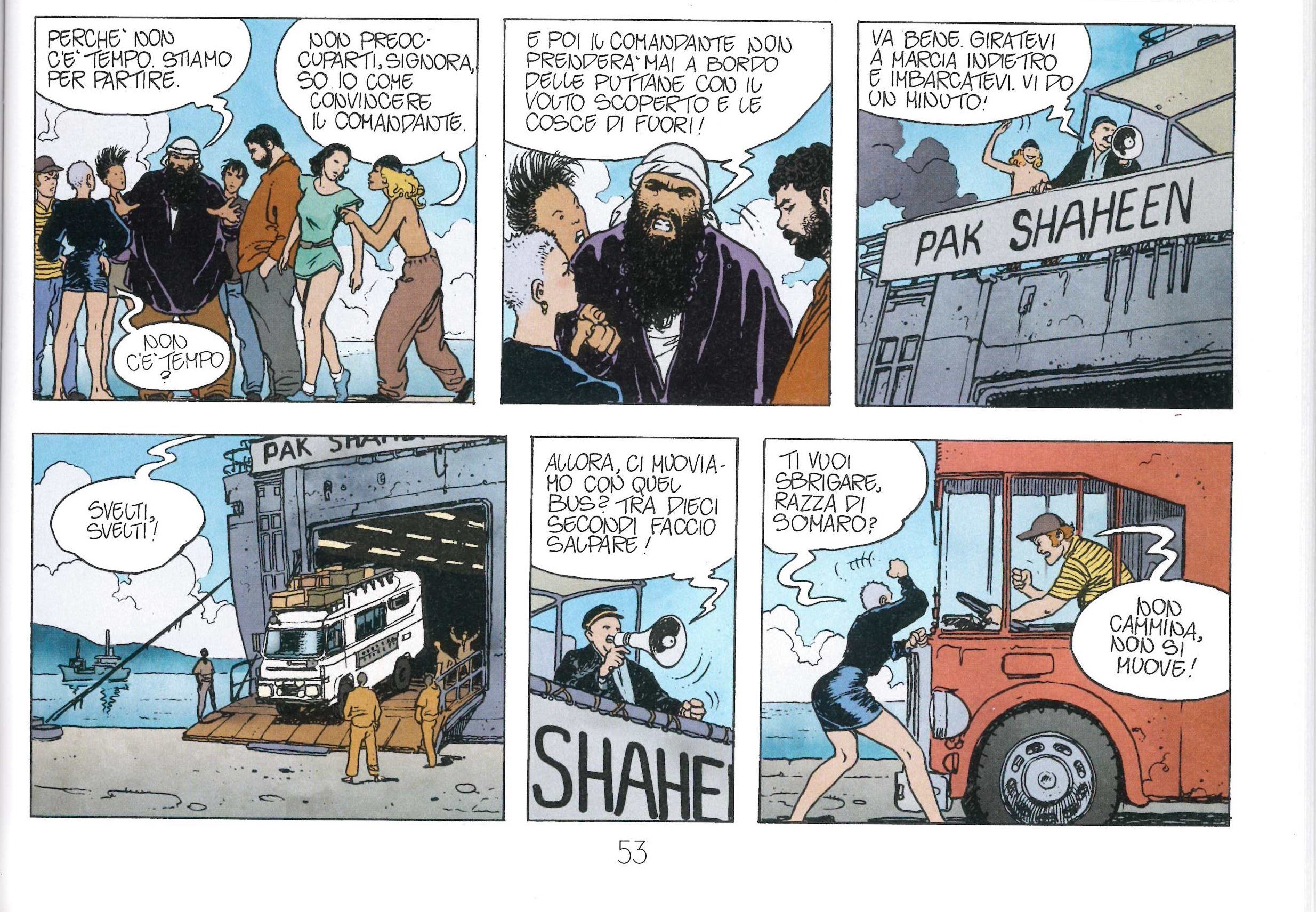 Mezza tavola originale realizzata da Manara per "Le avventure asiatiche di Giuseppe Bergman", pag. 43 della terza avventura di Bergman pubblicata per la prima volta sulla rivista Corto Maltese nel 1986. Piccolo strappo al margine inferiore. Su due pannelli.
