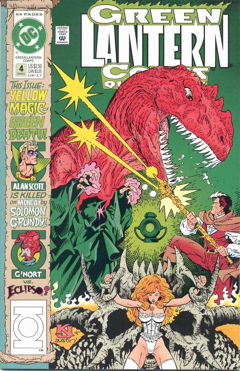 Originale di copertina realizzato da Kirk Jarvinen e Terry Austin per "Green Lantern Corps Quarterly" n. 4, edito dalla DC nel 1993. Tracce di foxing, fori di affissione ai margini, piccola mancanza all'angolo superiore sinistro e lieve piega. Firmato da entrambi gli autori.