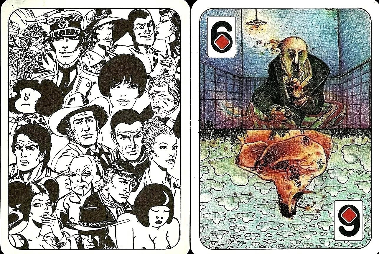 Illustrazione originale realizzata da Mattotti per la carta del 6 di Quadri contenuta nel mazzo da gioco Le Nuvole Parlanti edito nel 1980. Leggendario mazzo da gioco a cui parteciparono 120 autori tra i più celebri dell‘epoca. Firmata e datata.