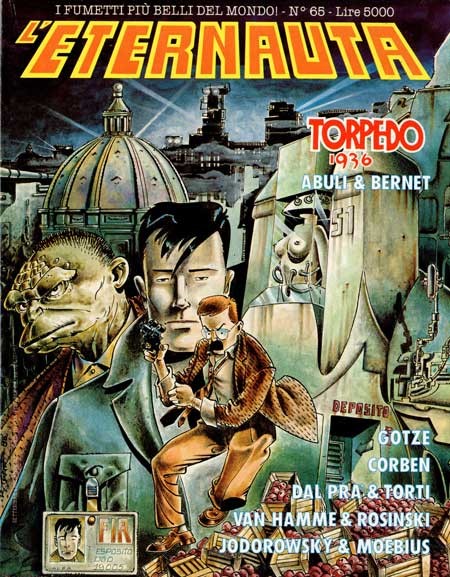 Originale di copertina realizzato da Torti per la celebre rivista L'Eternauta n. 65, edita dalla Comic Art nel 1988. Copertina edita in Francia sul volume "Leo Greco: La Ville Eternelle" dalla Dargaud nel 1988. Firmato e datato.