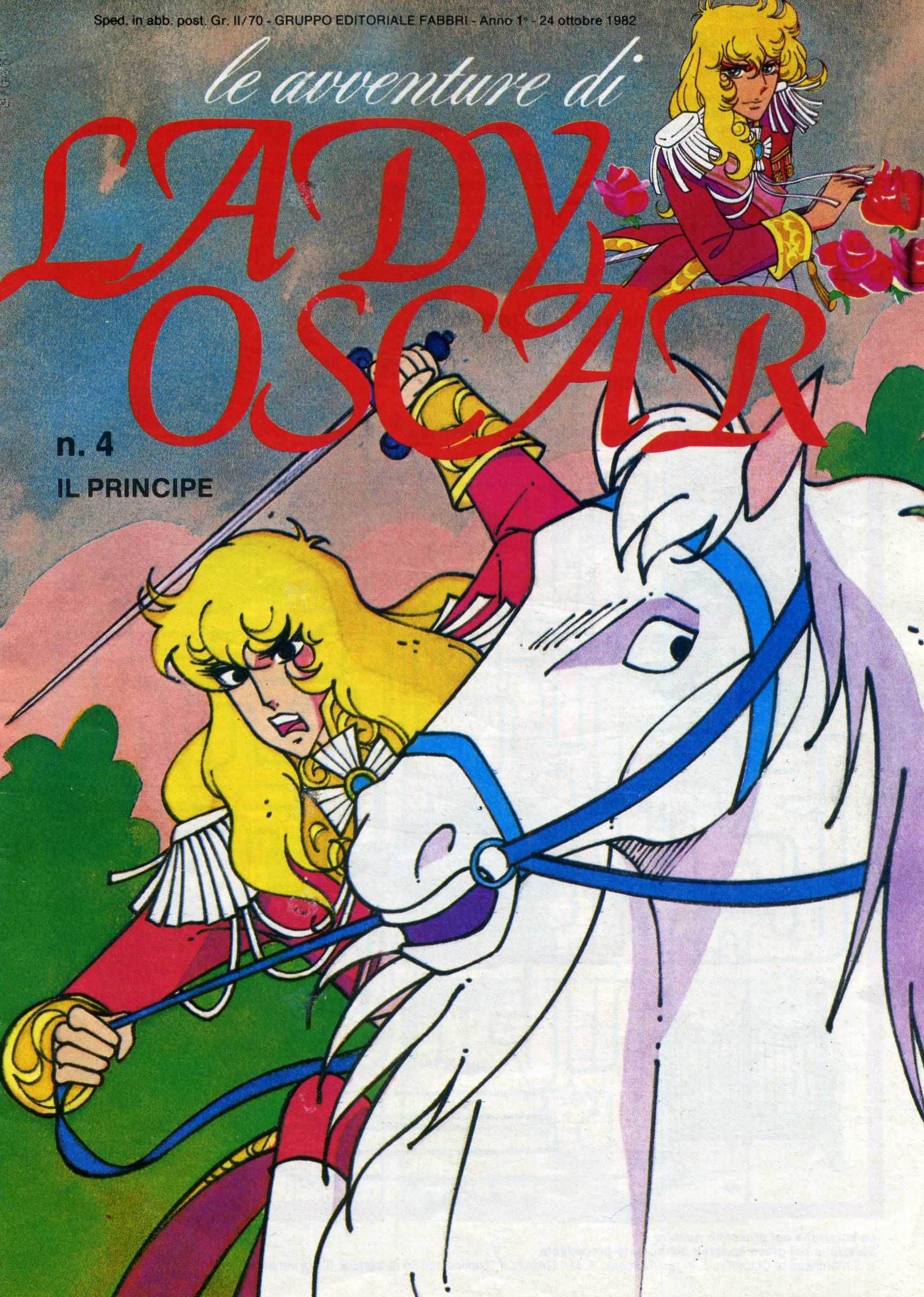 Originale di copertina realizzato da Frigerio per Le avventure di Lady Oscar n. 4, edito dalla Fabbri Editore nel 1982. Personaggio creato da Riyoko Ikeda nel 1972, Lady Oscar divenne un anime di 82 episodi nel 1979, la Fabbri Editore fu la prima a portare in Italia la versione a colori (censurata) del fumetto originale raccolta in 106 numeri.