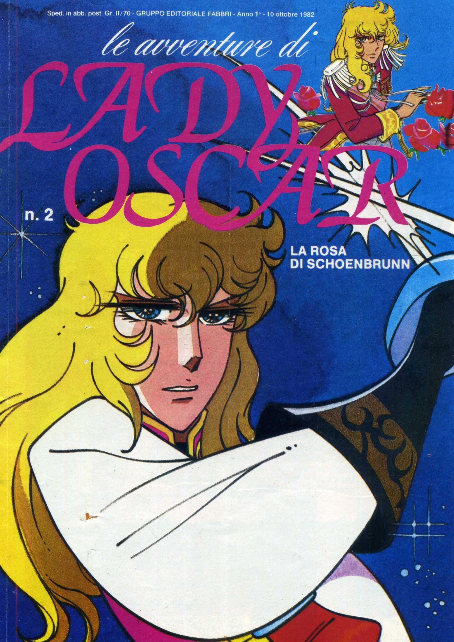Originale di copertina realizzato da Frigerio per Le avventure di Lady Oscar n. 2, edito dalla Fabbri Editore nel 1982. Personaggio creato da Riyoko Ikeda nel 1972, Lady Oscar divenne un anime di 82 episodi nel 1979, la Fabbri Editore fu la prima a portare in Italia la versione a colori (censurata) del fumetto originale raccolta in 106 numeri.