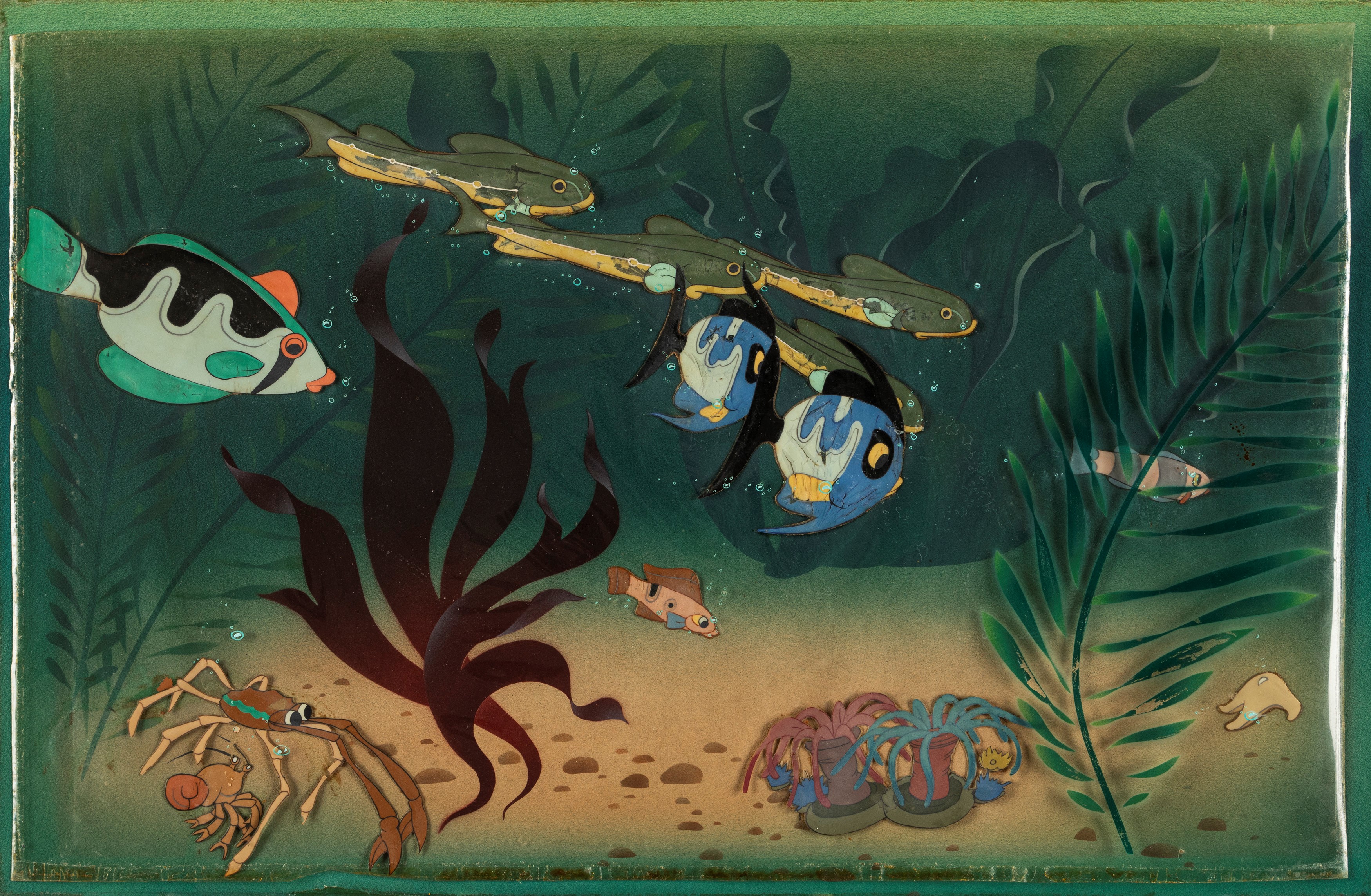 Cel originale su fondale dipinto realizzata dallo Studio Disney per il 2° Classico Disney "Pinocchio" prodotto dalla Walt Disney Productions nel 1940. In questa straordinaria sequenza sottomarina, in cui Pinocchio alla ricerca di suo padre incontra innumerevoli creature marine, sono presenti 8 rodovetri sagomati raffiguranti 14 creature marine tra pesci e crostacei, oltre a 1 foglio di rodovetro dipinto con un'alga e decine di piccole bolle. L'opera è stata montata sul fondale dipinto dalla galleria Courvoisier di San Francisco su richiesta della Disney, così da poter dare la possibilità agli appassionati di possedere un pezzo di storia dell'animazione.