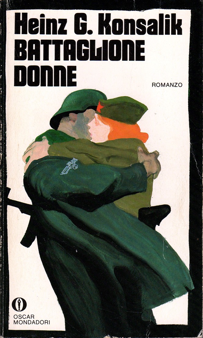 Originale di copertina realizzato dal Pintér per il romanzo "Battaglione Donne" di Heinz G. Konsalik, edito dalla Oscar Mondadori nel 1983. Seconda guerra mondiale, fronte orientale, tra Peter Hesslich, maresciallo capo della Wehrmacht, e Stella Antonovna, tiratrice scelta di un reparto speciale femminile dell'Armata Rossa, la guerra impone che ci sia soltanto odio. Gettati in mezzo al fuoco senza sosta delle armi, il loro dovere è uccidersi a vicenda. Invece, vicendevolmente, si ameranno, nonostante i contrasti insormontabili e l'ineluttabile corso del conflitto. Si ameranno con la stessa violenza che contraddistingue la guerra, e, sulle sue macerie, riusciranno anche a costruirsi un futuro, come qualche volta la fortuna concede agli eroi. Tra le voci più complesse e creative della grafica del XX secolo, Pintér con le sue illustrazioni ha lasciato un segno a livello mondiale, la sua opera è caratterizzata dall'impostazione grafico-cartellonistica mitteleuropea, la sua espressività risente di una cultura pittorica e artistica profondissima, con citazioni e richiami talvolta espliciti, talvolta sotterranei e incrociati. Dalla sua mano sono nate illustrazioni potenti e sintetiche, racconti in un'immagine, ormai divenute parte dell'immaginario collettivo. Celebri sono le copertine Mondadori. Firmato.